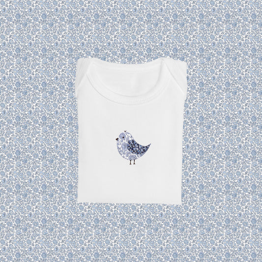Short Sleeve Bodysuit - Bird Pale Blue