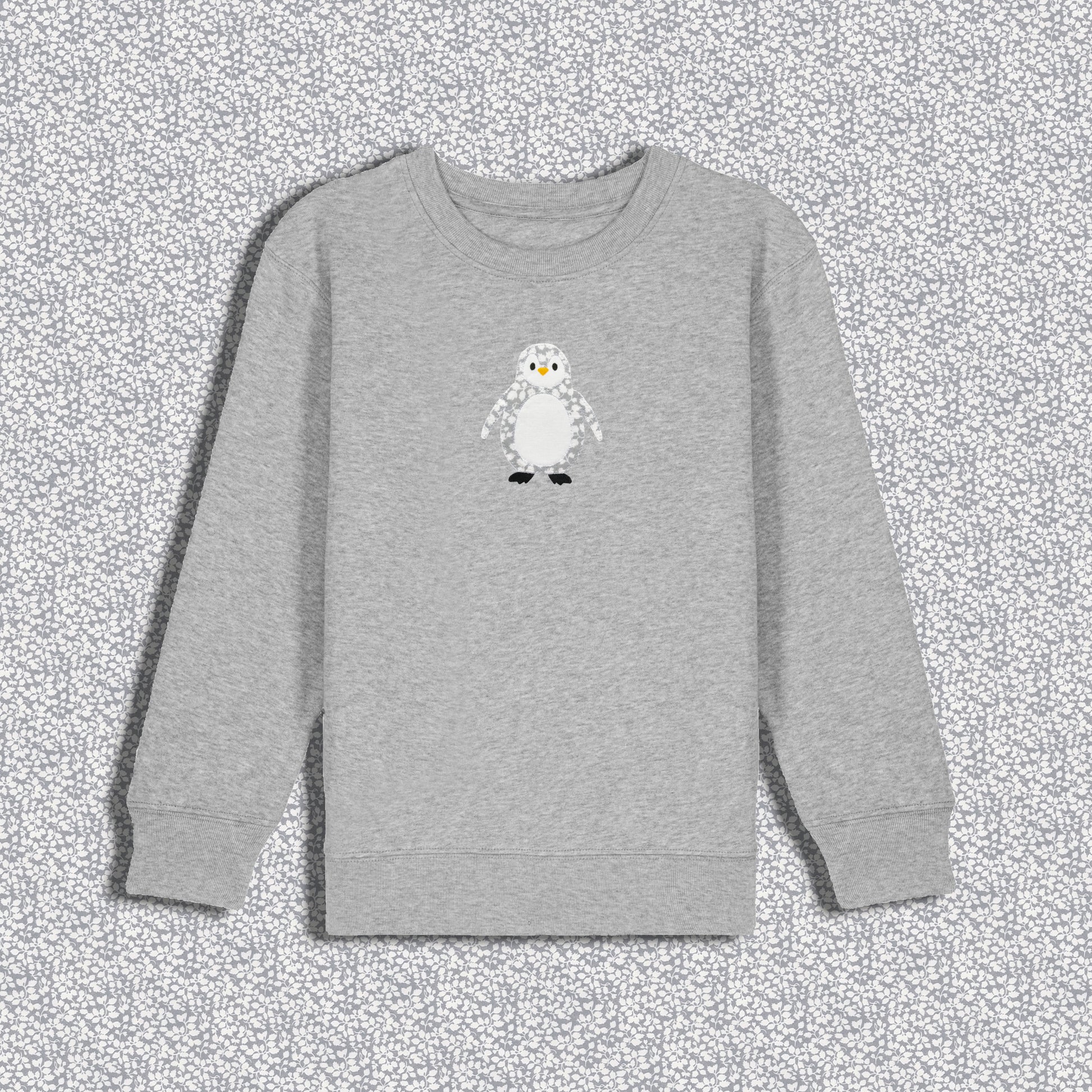 Each sweatshirt is hand-finished with a playful penguin appliqué crafted from Liberty Tana Lawn cotton fabric and complementing print detail.